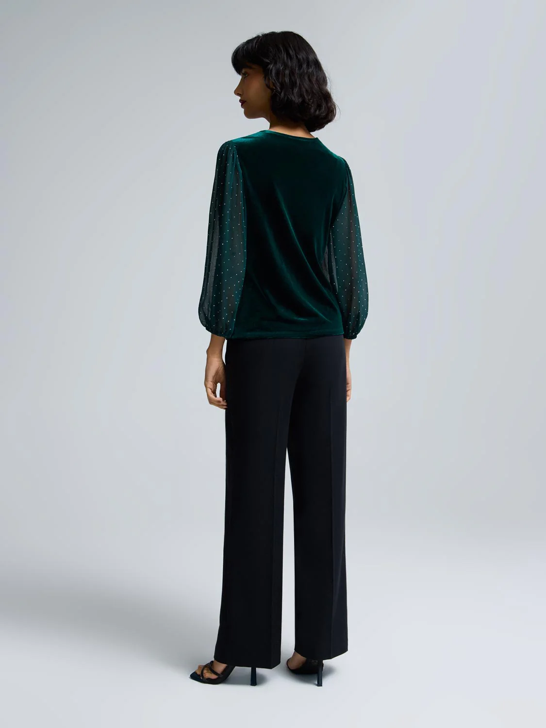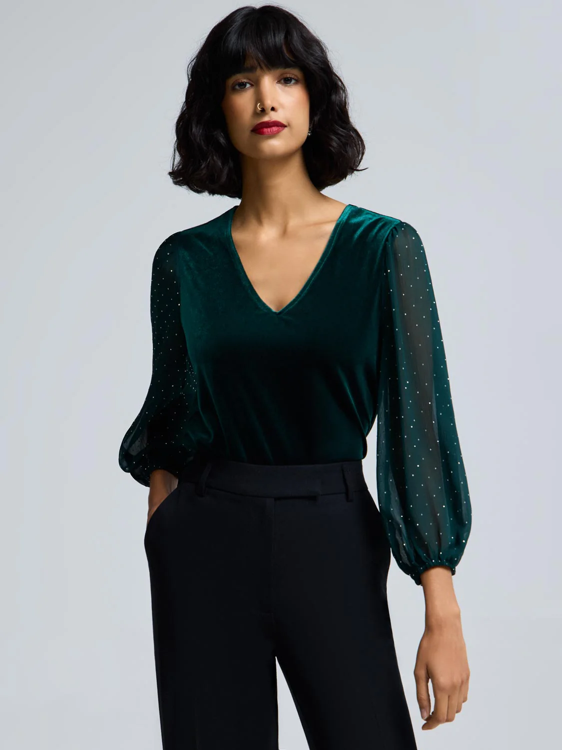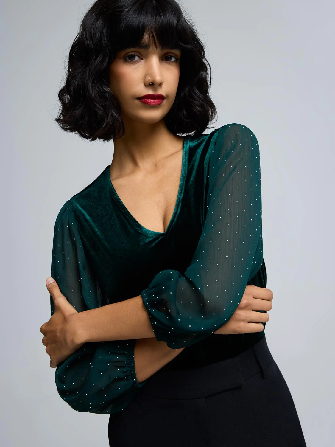 Rhinestone Sleeve Velvet Top