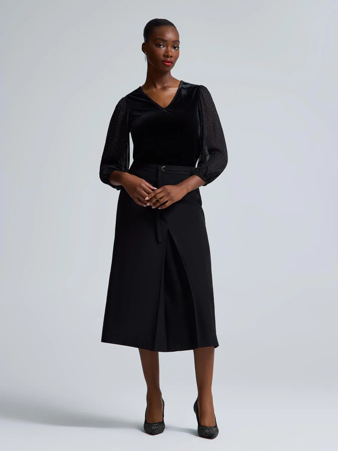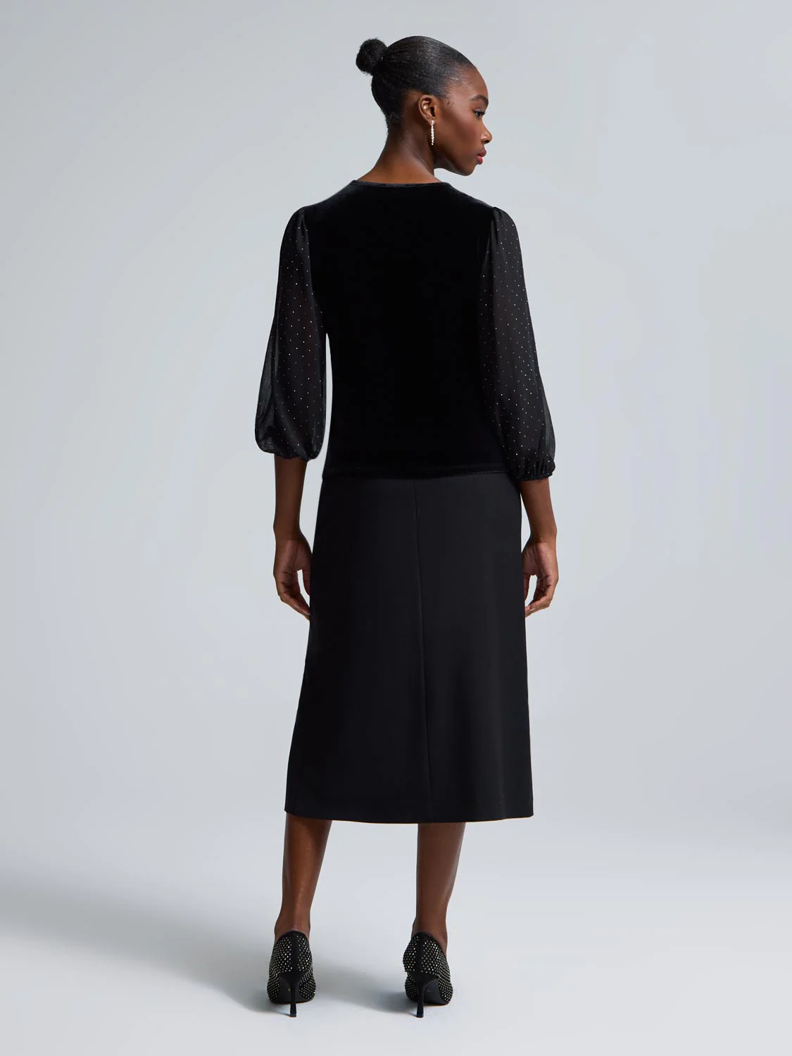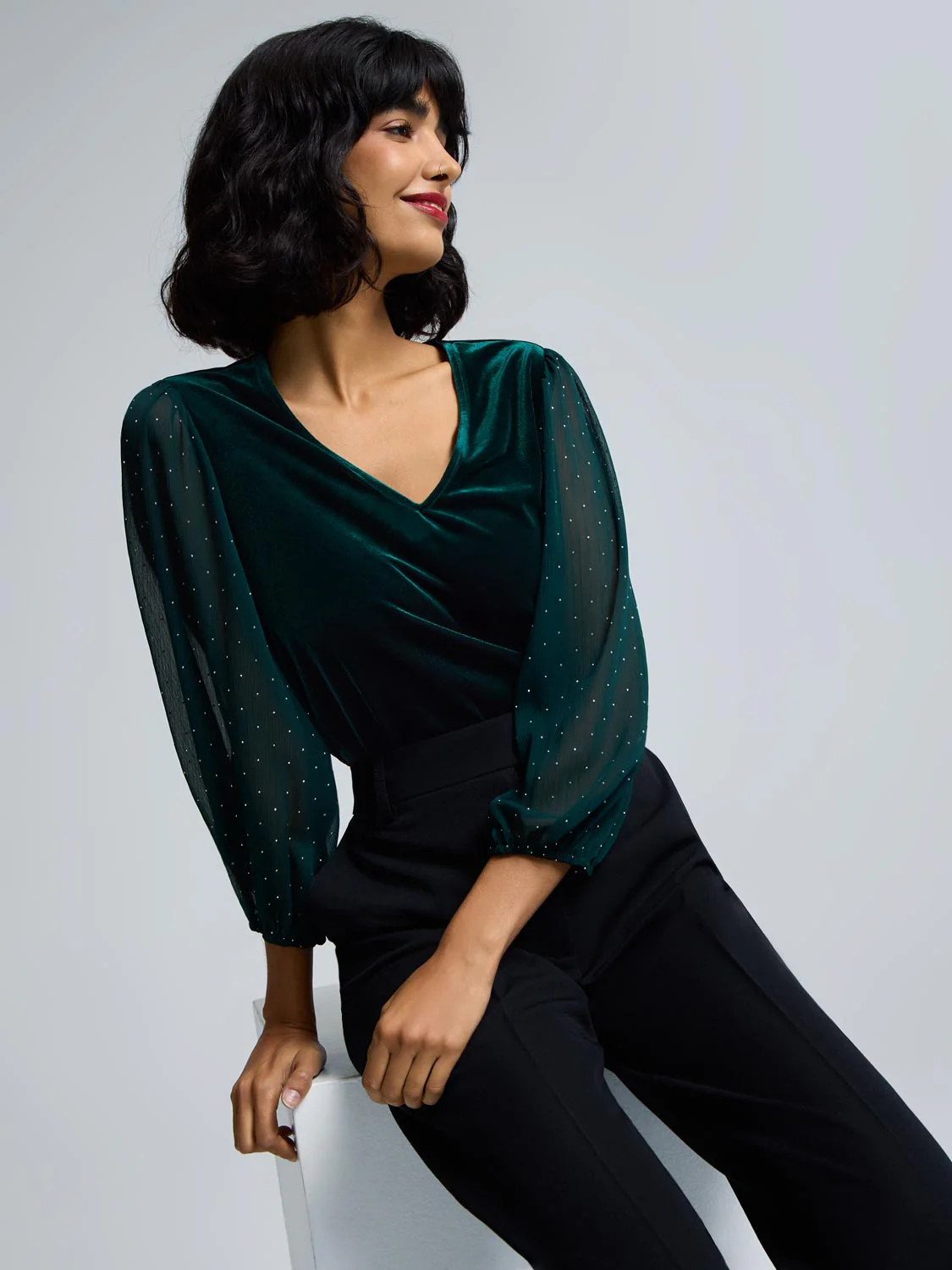 Rhinestone Sleeve Velvet Top