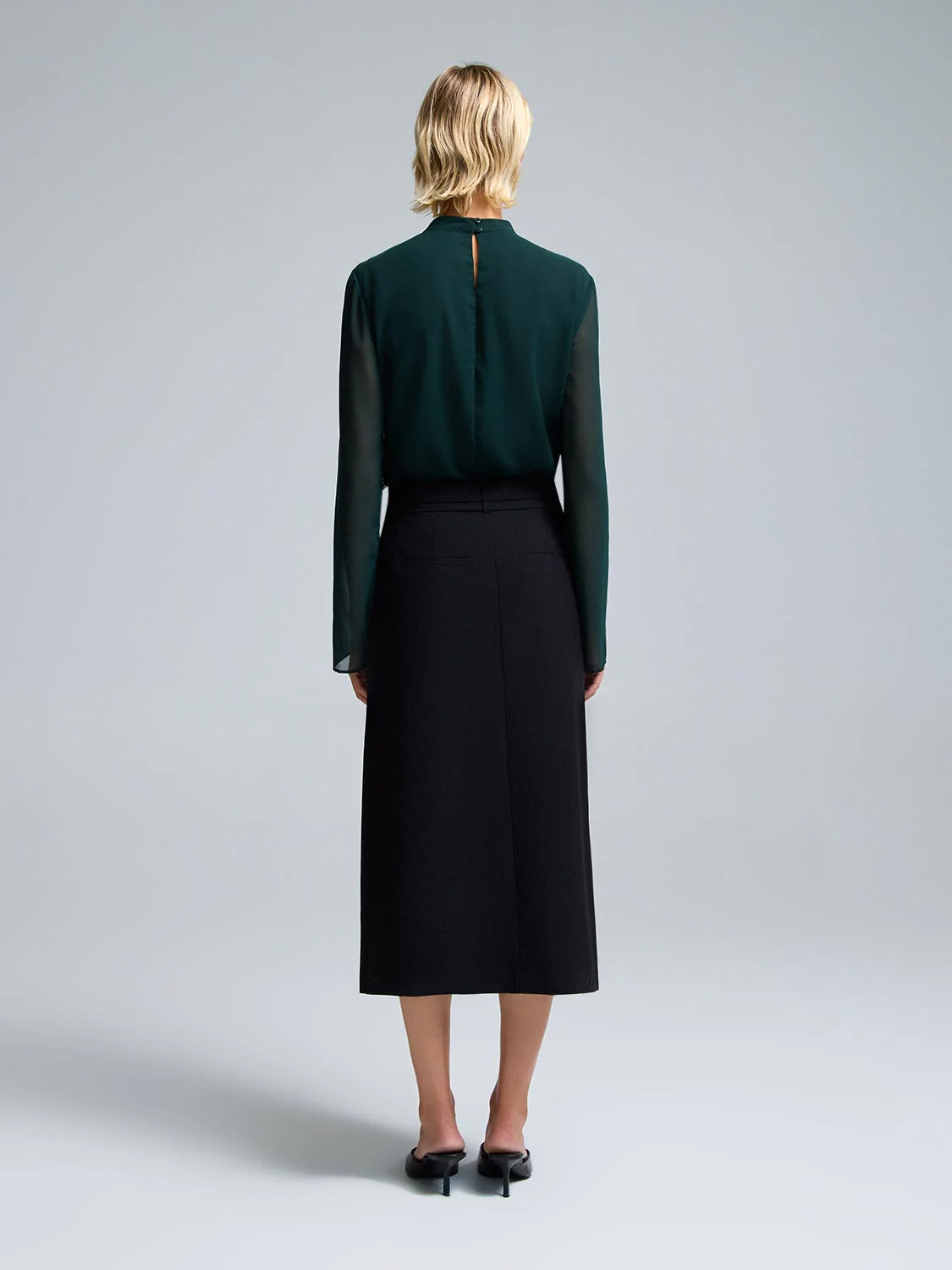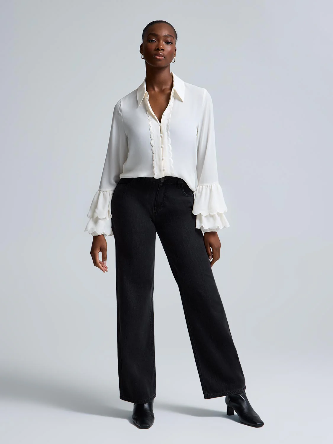 Scallop Detail Button-Front Chiffon Blouse