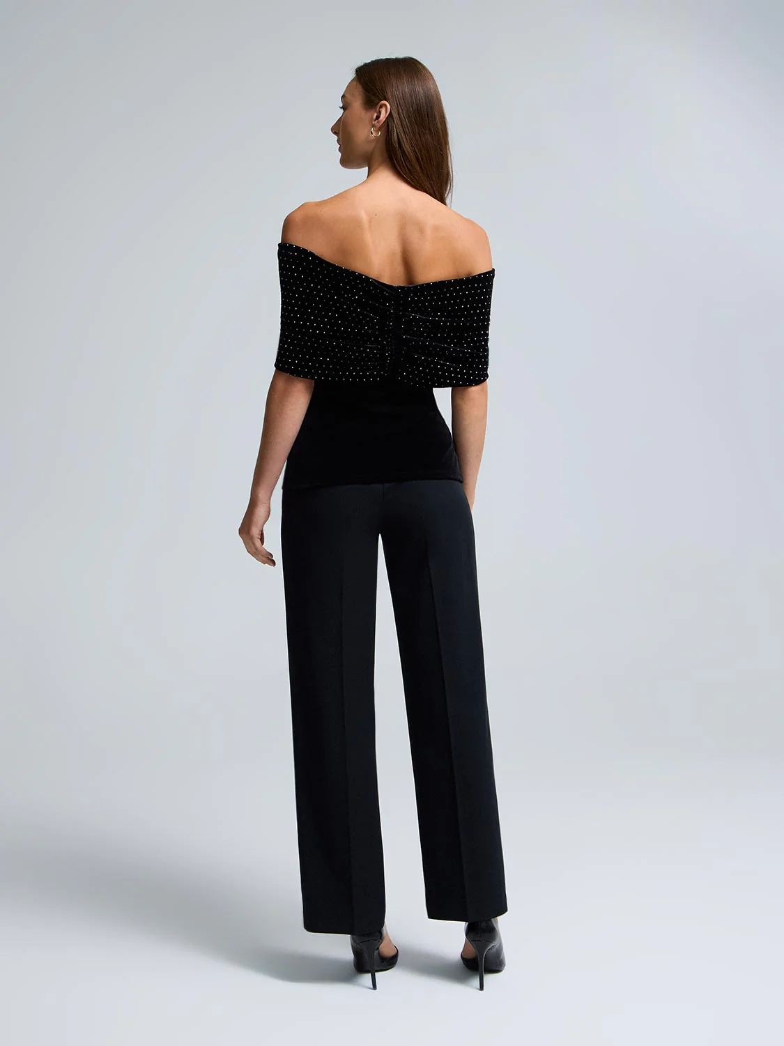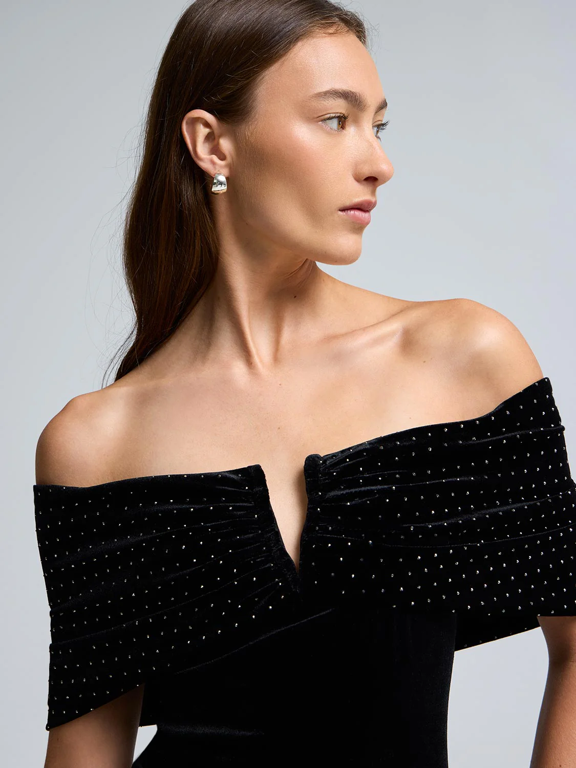 Off-The-Shoulder Rhinestone Velvet Top