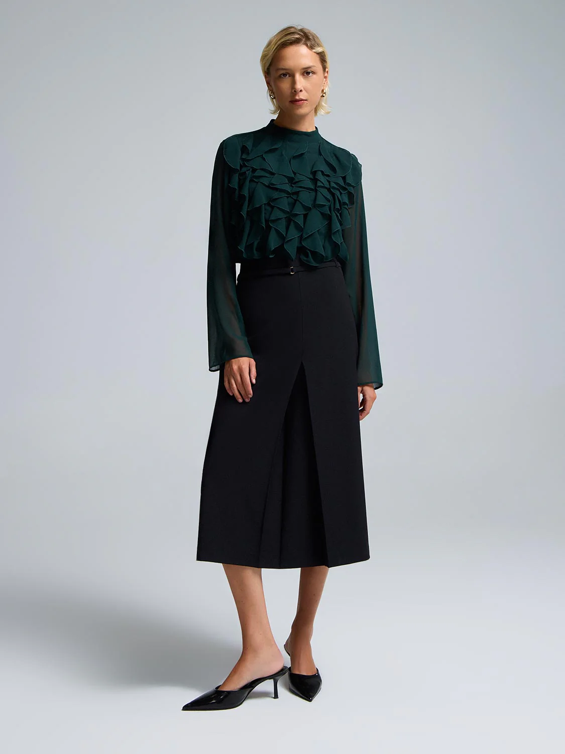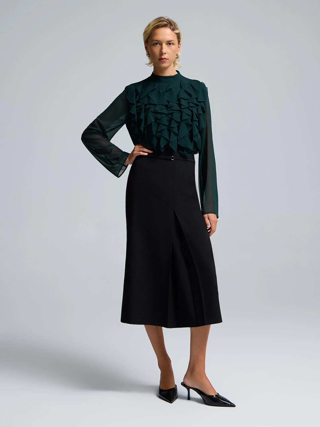Mini Mock Neck Ruffle Chiffon Blouse