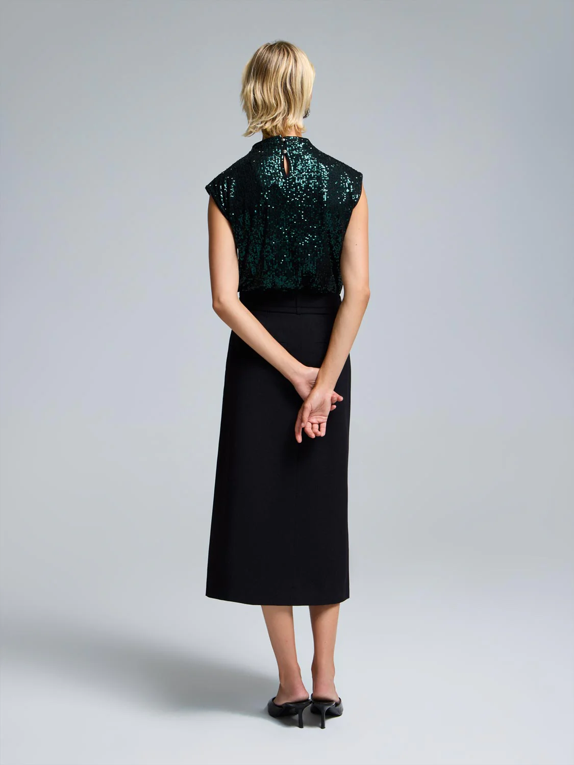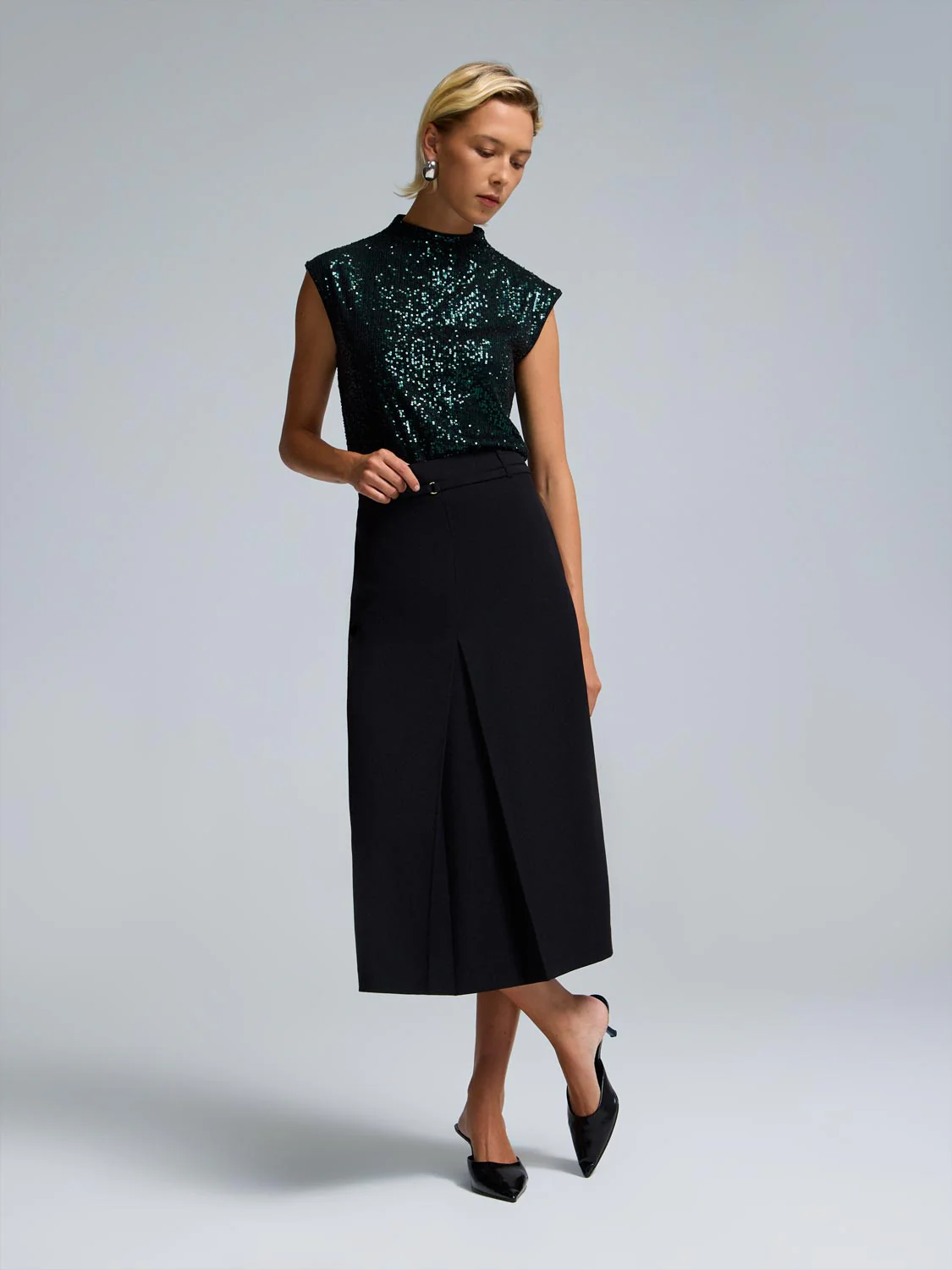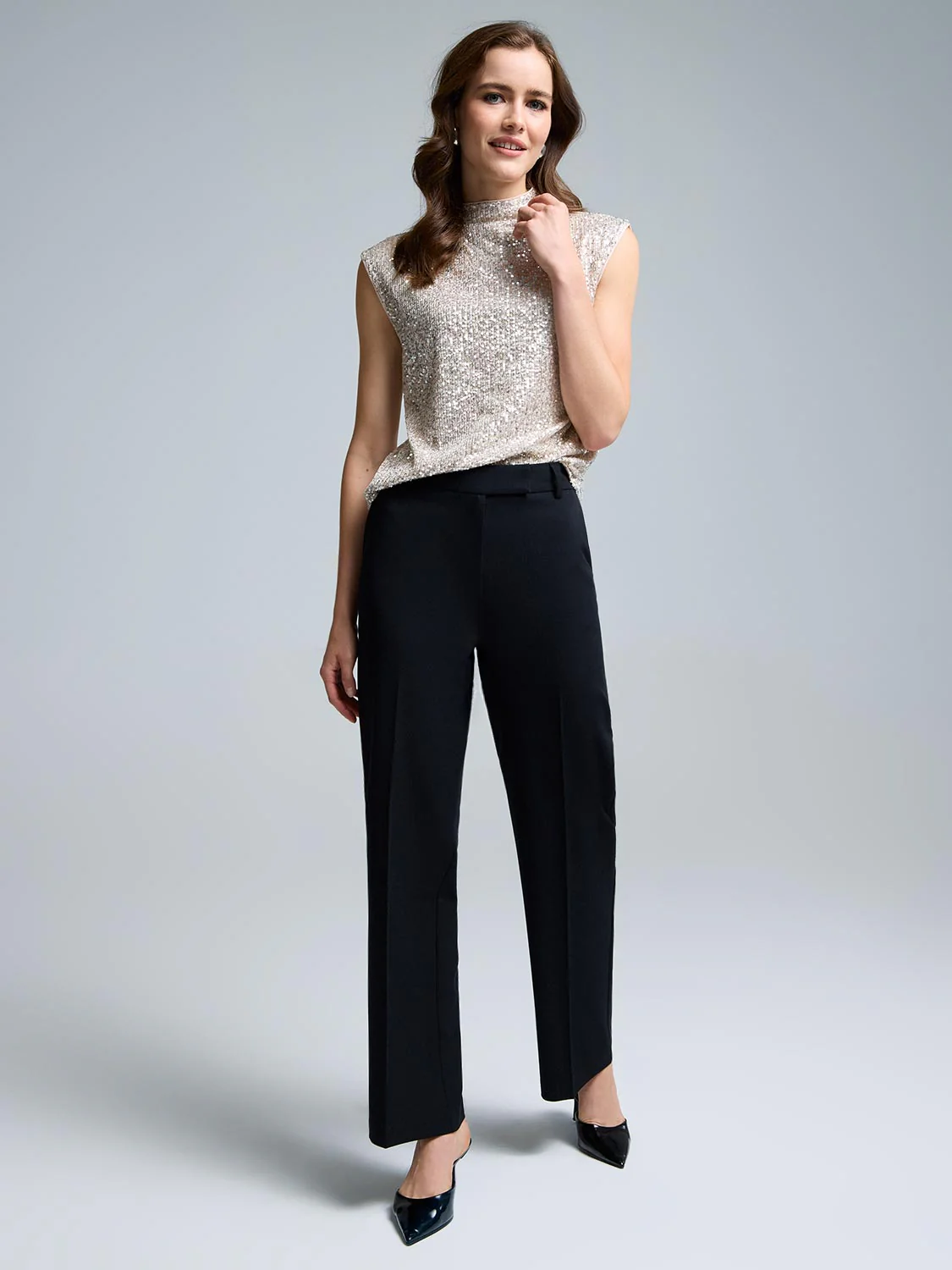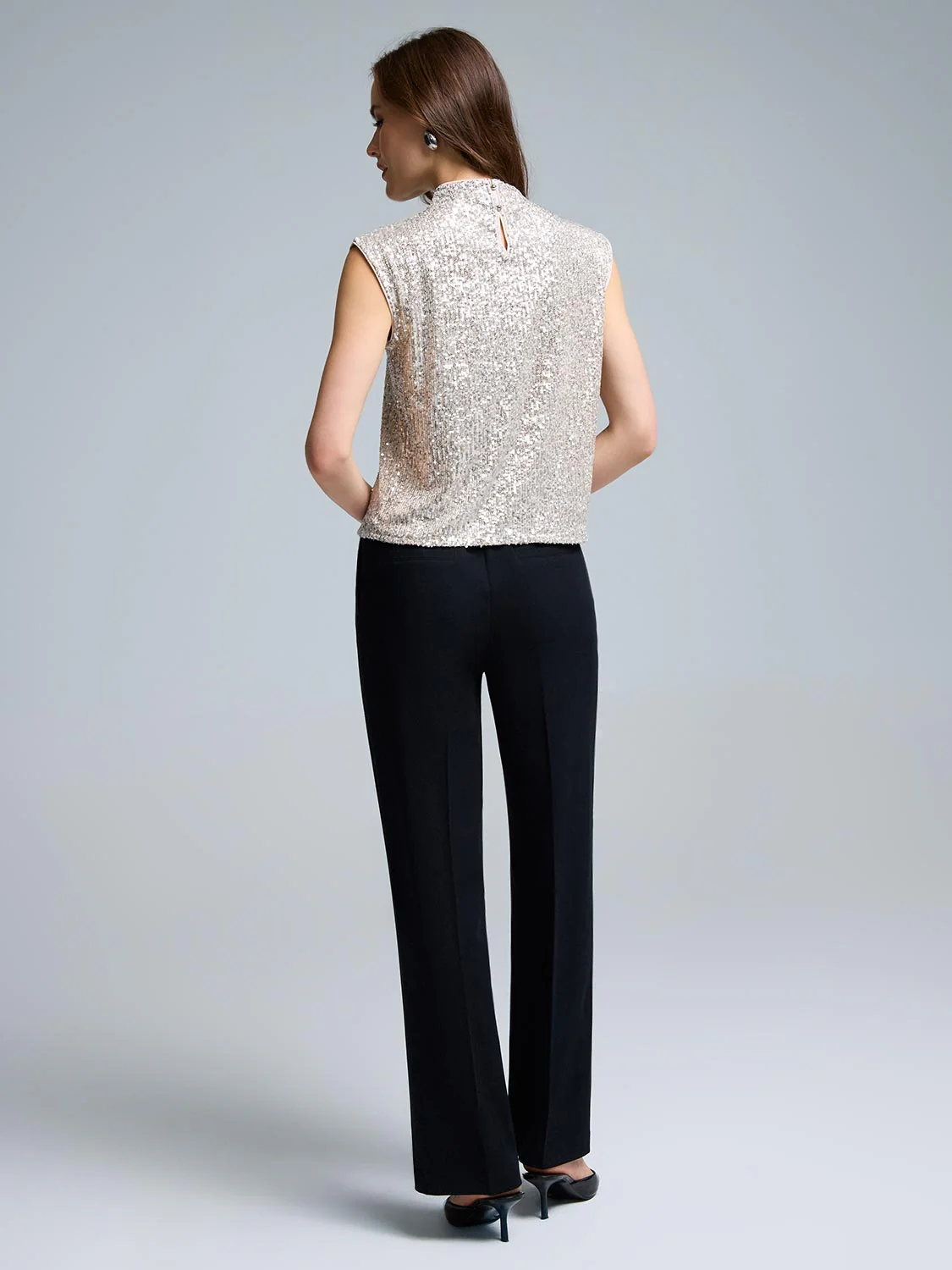 Sequin Mesh Funnel Neck Top