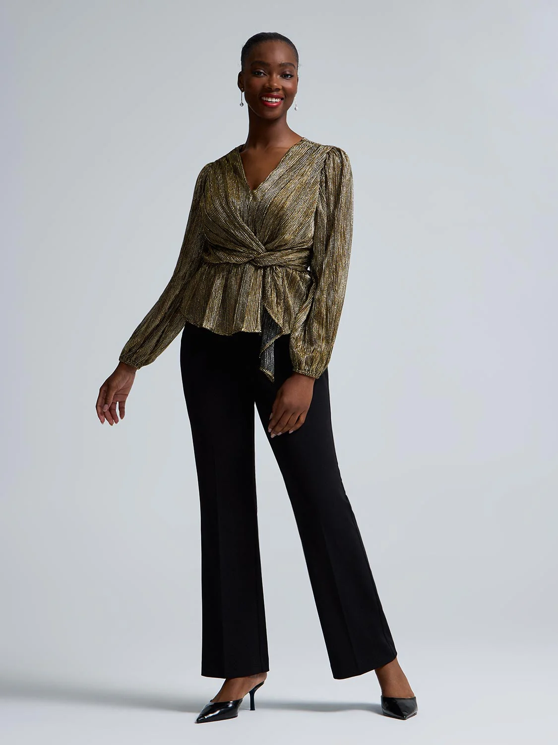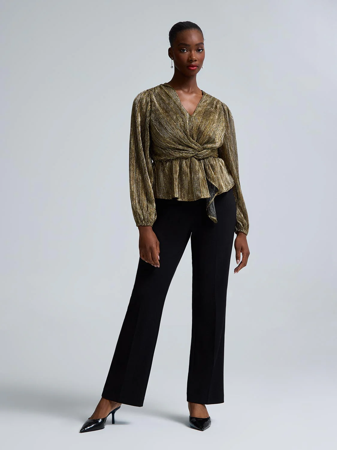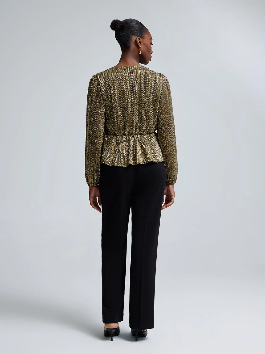 Foil Mesh Sleeve Peplum Top