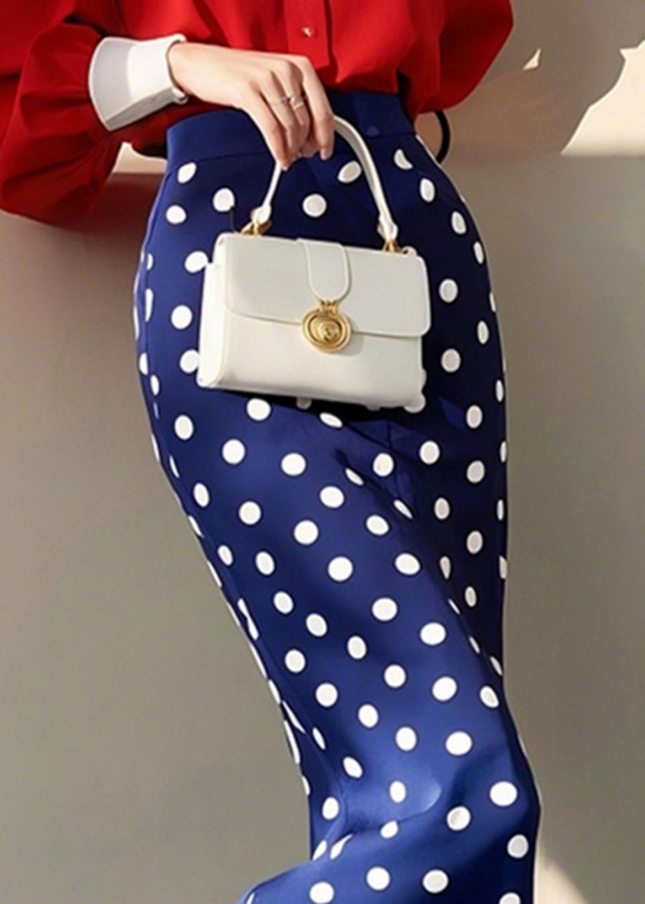 Slim Fit Blue Dot High Waist Cotton Skirt Spring
