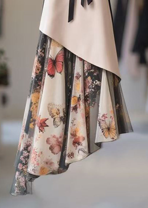 Chic Asymmetrical Print High Waist Chiffon Patchwork Skirts Spring