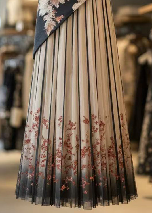 Retro Black Print Wrinkled Patchwork Chiffon Skirts Summer